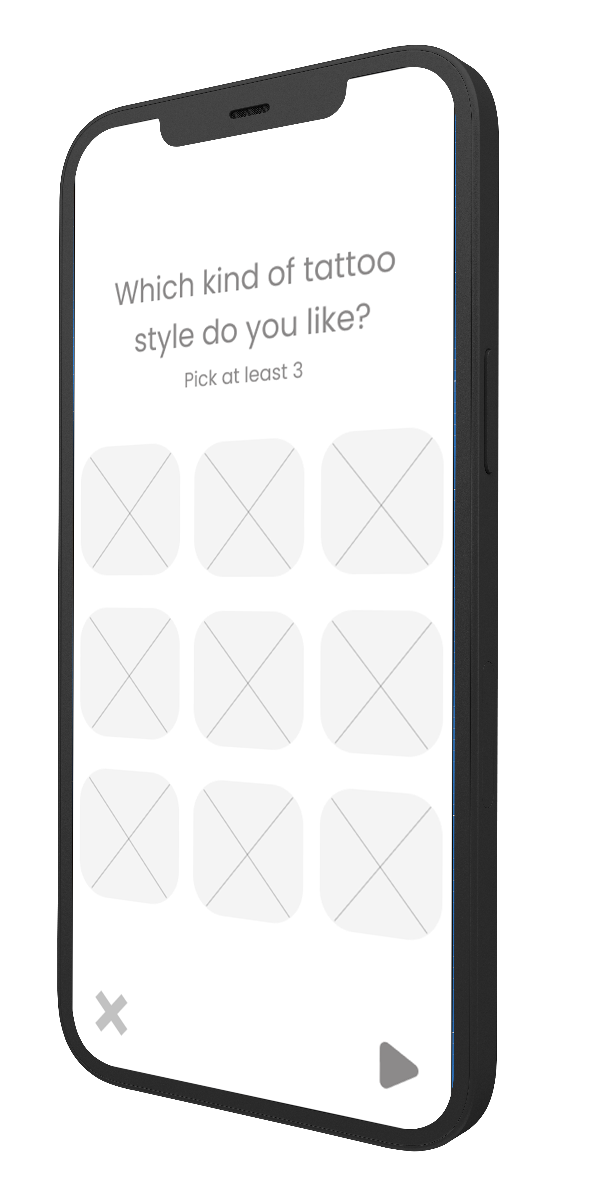 Designing the tattoo style and selection screens was challenging. I aimed to make the information clear for all users, even those with no tattoo knowledge. To achieve this, I decided to include both an image and text on the style selection screen after consulting with users.